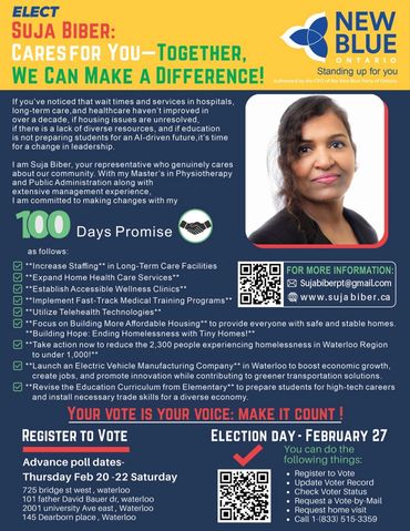 #SujaBiber #NewBlueParty #WaterlooDistrict #CommunityFirst #Leadership #TogetherWeCan